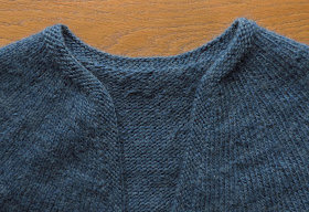 One thing I particularly like is that the fronts don't gape at the bottom.  You would think that to make a cardigan intended to be worn unfastened, you should just make the front edges parallel with the sides - but if you do that, the front opening tends to be an inverted V, because most women are wider at hip level than higher up.  In 'Fine Sand', there are increases all down the front edges, to take account of that, and so the front edges hang more or less vertically.