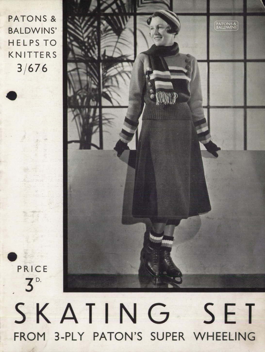 And one of my very favourite Jester patterns, from the late 1940s/early 1950s is a winter sports outfit of a sweater with matching mittens and hat, shown with a pair of ice-skates.