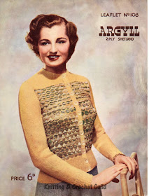 Leaflet 103 is a twin-set in stranded knitting - the design on the cardigan is almost an Argyle pattern. I wonder if that was deliberate?